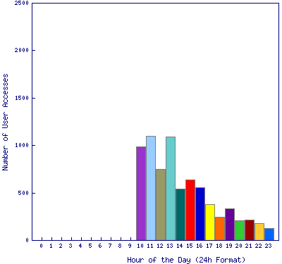 The table of accesses by time of day per student does, however, show hits before 10 a.m. The bug is probably due to the coding of time; the summary table and histogram use single digits for hours before 10 a.m. (that is 0, 1, 2 ... 9) while the raw data of accesses per student use double digits (00, 01, 02 ... 09).