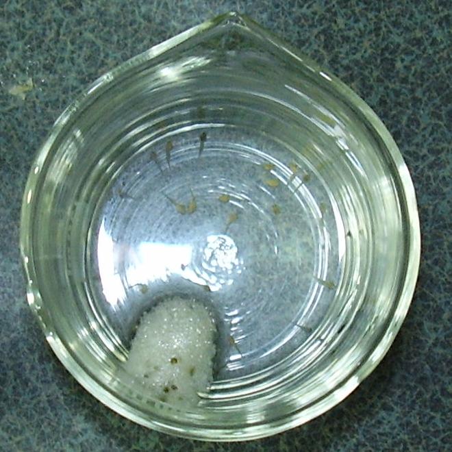 Acute toxicity is measured using nest fractions hatching directly into test solutions, and in older (Gosner stage 25-26) tadpoles. The latter are studied with (shown above) or without a soil substrate.
